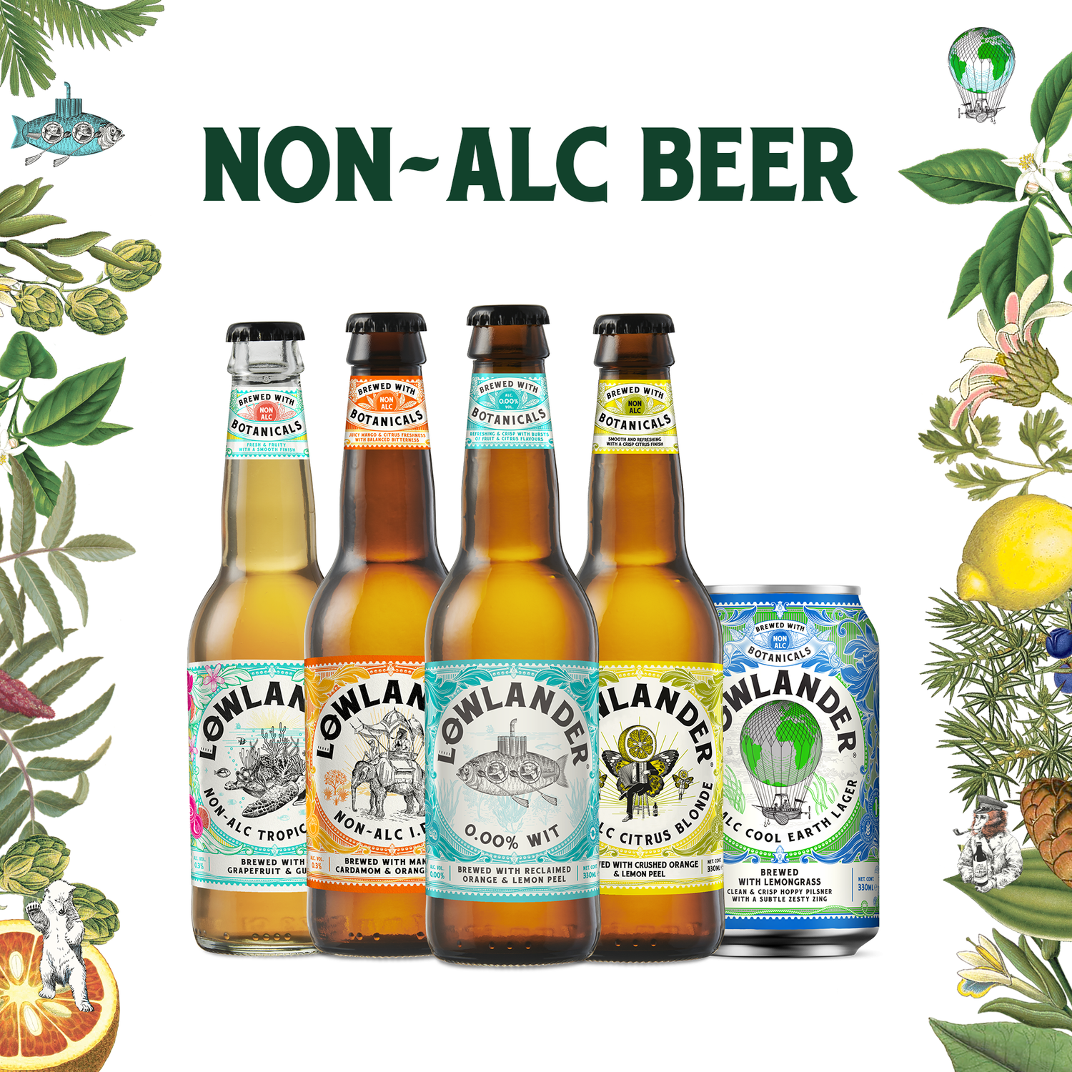After spending years in breweries, distilleries, bars and restaurants it was time to explore the world of botanicals again, but this time for alcohol free beverages. Without the addition of extra artificial flavourings and sugars we managed to create a selection of delicious and well balanced alcohol free beers. Perfect for everyone and every mood.