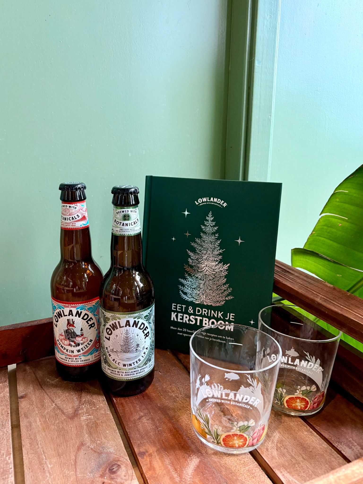 2 heerlijke winterbieren met bijpassende Lowlander 25cl tumber glazen – inclusief ons "Eet & Drink je Kerstboom"-boek